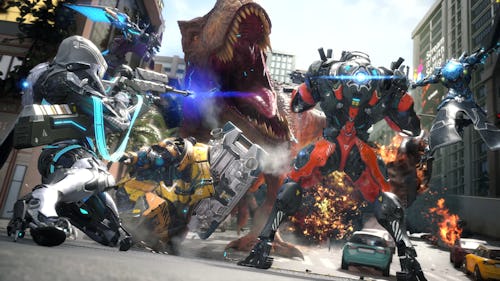 Capcom has revealed ‘Exoprimal,’ a new dinosaur-themed multiplayer action game. Here are 7 dazzling images of dinosaur tornadoes and more.