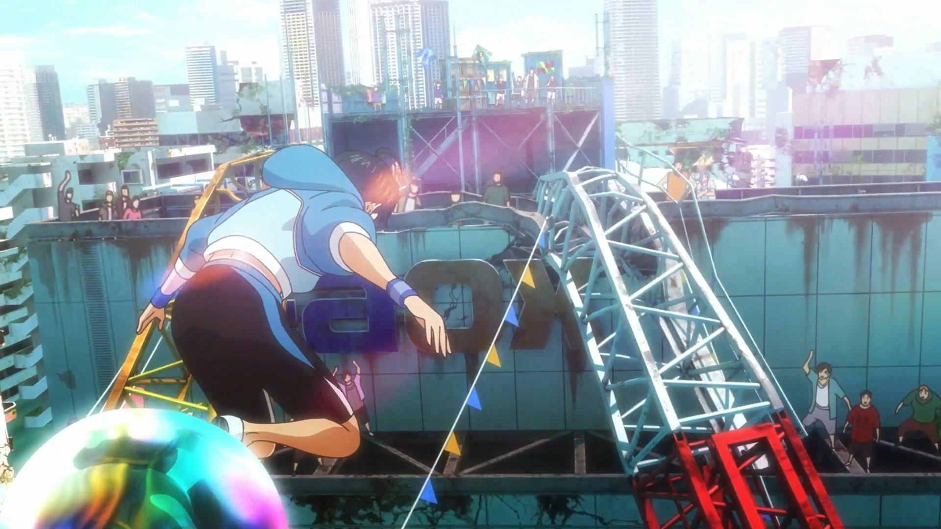 Tetsuro Araki and his team give us dynamic camera movements that swirl and jump around with the characters, seamlessly mixing 2D and 3D animation in sequences that feel like the evolution of the 3D maneuver sequences in Attack on Titan. The first time we see Hibiki in action, where he effortlessly navigates floating debris, bubbles, and violent competitors, is an awe-inspiring moment that could only be done in animation.